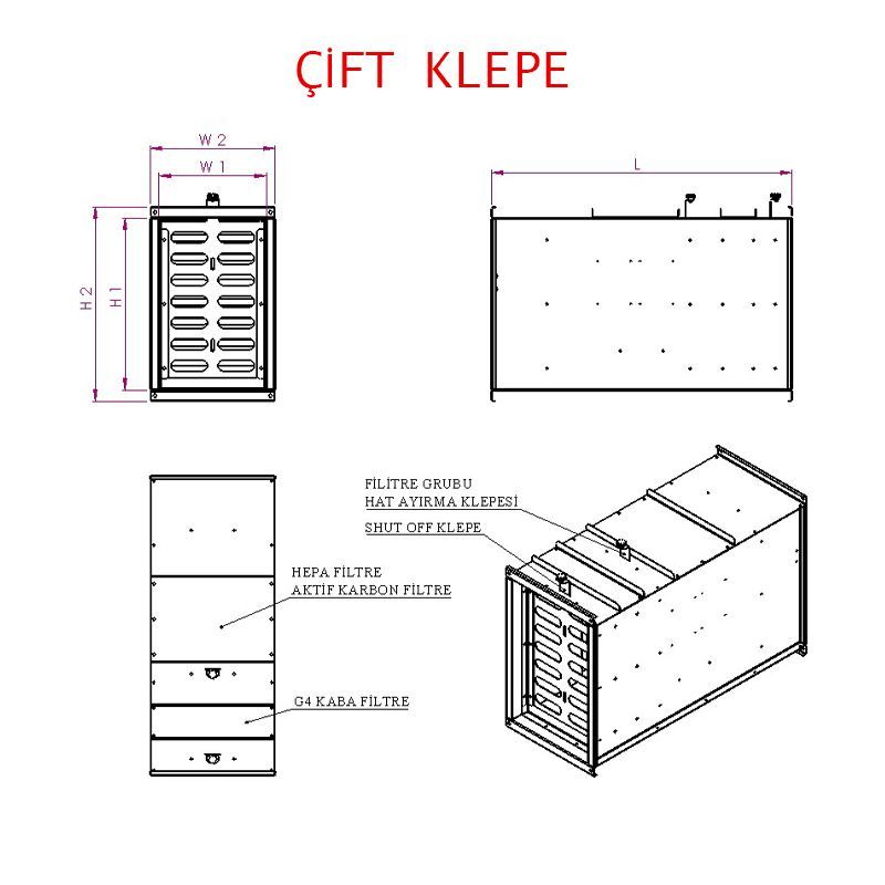 Çift klepe sığınak taze hava santrali, sığınaklar ve benzeri kritik ortamlar için güvenilir, kontrollü ve kesintisiz taze hava temini sağlamak amacıyla özel olarak geliştirilmiştir. Acil durum senaryolarında maksimum güvenlik sunan çift klepe yapısı, hava akışını tam kontrol altında tutar.